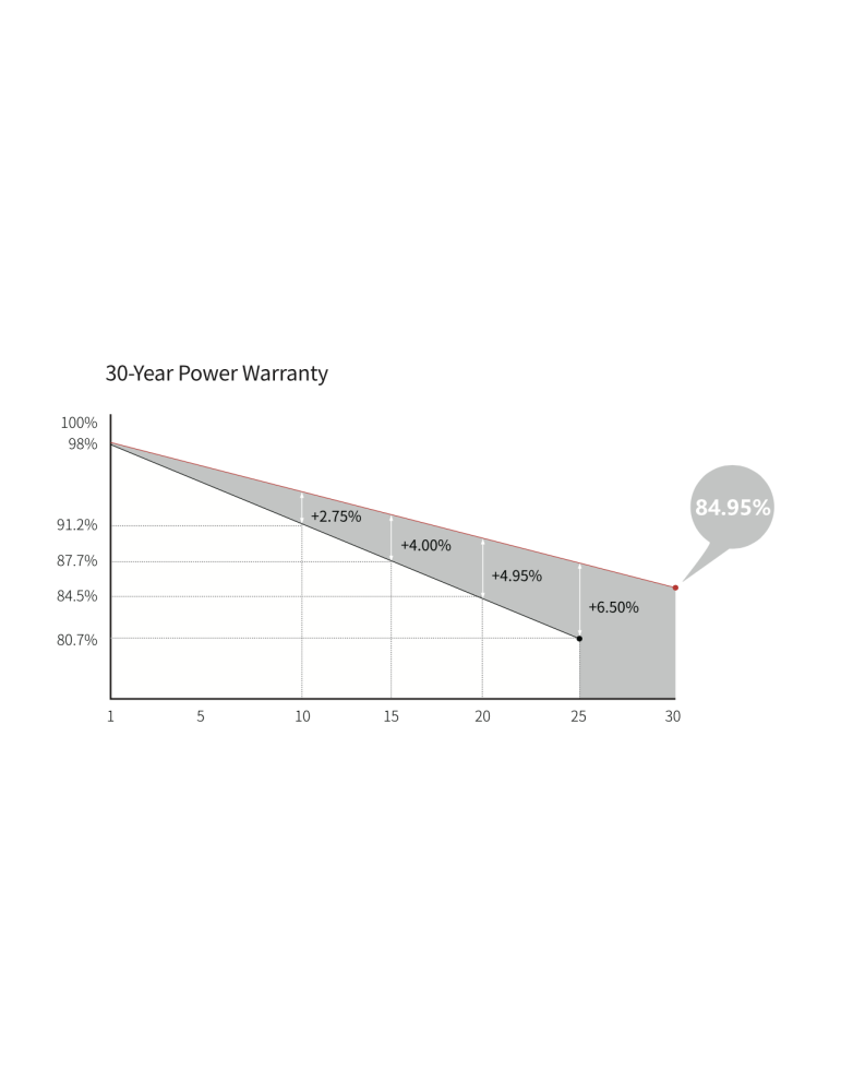 La technologie avancée des modules permet d'obtenir une efficacité supérieure : Plaquette M10 dopée au gallium ; rubans segmentés intégrés ; cellule demi-coupée à 9 barres